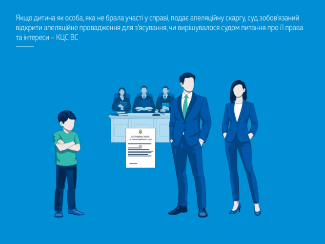 КЦС ВС зазначив, що у спорах між батьками про визначення місця проживання дитини сама дитина не може бути самостійним учасником справи, оскільки її інтереси представляють батьки. Однак якщо дитина як особа, що не брала участі у справі, подає апеляційну скаргу, суд зобов'язаний відкрити апеляційне провадження для з'ясування, чи вирішувалося рішенням суду питання про її права та інтереси. Лише після встановлення відсутності вирішення таких питань провадження підлягає закриттю за п. 3 ч. 1 ст. 362 ЦПК України.
